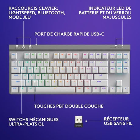 €251,61Unit price /Unavailable Clavier gamer - sans fil - Logitech G - G915 TKL X - Switch tactile - AZERTY - Blanc