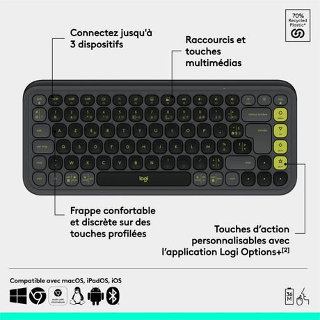 €86,98Unit price /Unavailable Clavier - Sans fil - Logitech - Pop Icon Keys - AZERTY - Graphite