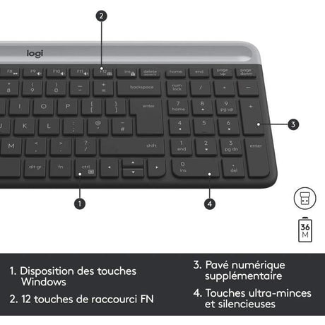 Ensemble Clavier Souris - Sans fil - Logitech - MK470 Slim - Silencieux - AZERTY - Noir