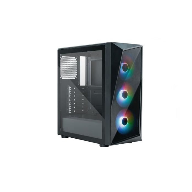Boîtiers PC - Cooler Master - CMP 520 - Moyen tour ATX - Façade mesh asymétrique avec 3 ventilateurs ARGB 120 mm inclus - Panneau latéral en verre trempé - Support radiateur jusqu'a 280 mm (avant) / 240 mm (haut) / 120 mm (arriere) - GPU max 350 mm - Ventirad CPU max 161 mm - Alim max 160 mm - Baies : 2×2.5" SSD, 2×2.5"/3.5" combo - Slots d'expansion : 7 - Connectique : 1× USB 3.2 Gen 1 Type-A, 1× USB 2.0, audio/micro, contrôleur ARGB - Garantie 3 ans