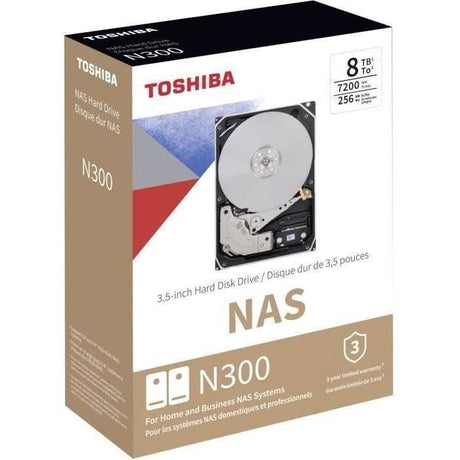 Disque Dur Interne - TOSHIBA - NAS N300 - 8To - 7200 tr/min - 3.5 Boite Retail (HDWG480EZSTA)