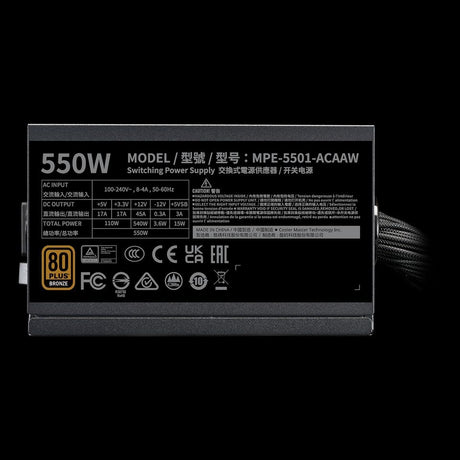 €293,10Unit price /UnavailableVery low stock (2 units)Alimentation PC - COOLER MASTER - MPE-5501-ACAAW-3BEU - MWE 550W V3 ATX 3.1 - 80+ BRONZE - 550 W