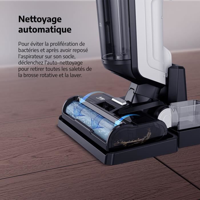 BEKO VCW70340W - Aspirateur Balai Laveur 3 en 1 - Option vapeur - 300 W - Vapeur 1400 W - 2 réservoirs - Ecran LED - Blanc et noir