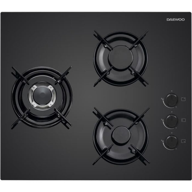 Plaque de cuisson a gaz - DAEWOO - 3 foyers - 60 cm - BH6GKR21BNL - Noir