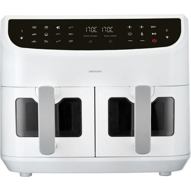 Friteuse a Air Chaud - MEDION - P20 XXL Twin - 2600 W - 2 paniers - 9 programmes - Blanc