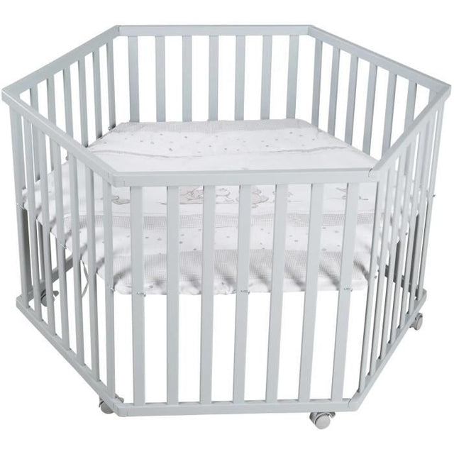 Parc bébé évolutif hegaxonal - ROBA - STERNENZAUBER - Housse rembourrée - Motif Éléphants - 6 Roues freinées - Bois Laqué Gris is backordered and will ship as soon as it is back in stock.