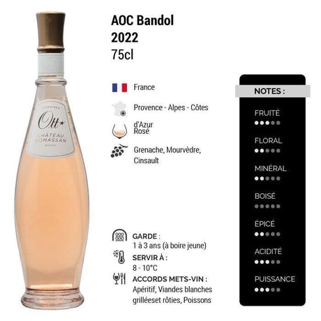 €38,64Unit price /UnavailableIn stock (30 units)Domaines OTT Château de Romassan 2024 Bandol - Vin Rosé (75cl)