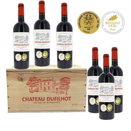 Château Dufilhot 2023 Côtes de Bordeaux - Vin rouge lot de 6 bouteilles en Caisse bois