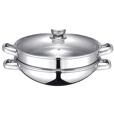 Wok 2-en-1 - BAUMALU - Tous feux dont induction - Couvercle verre - 32 cm