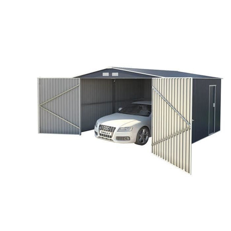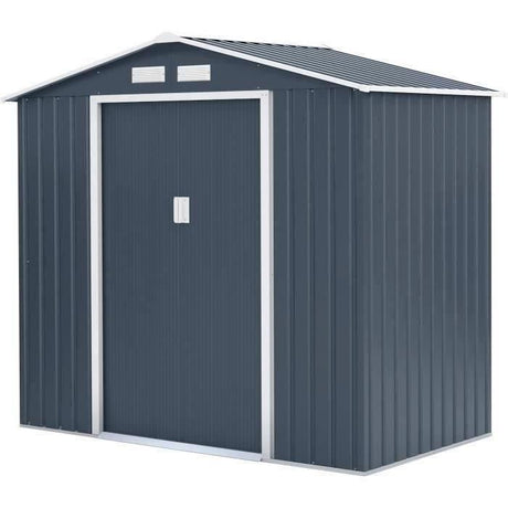 Abri de jardin en métal 3,68 m2 - Kit d'ancrage inclus - Gris anthracite