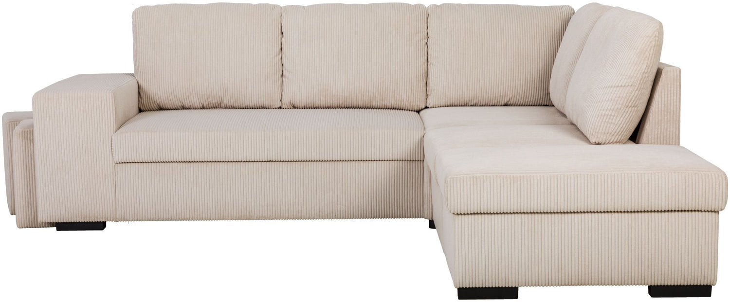 Canapé d'angle convertible réversible - 4/5 places - MITCHELL - Tissu velours côtelé Beige - Coffre, Poufs - 247 x 205 x 91 cm