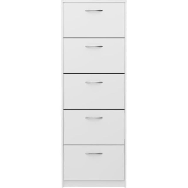 Meuble a chaussures - Blanc - 5 Abattants - 10 paires - L58,5 x H168,5 – Tradiscount