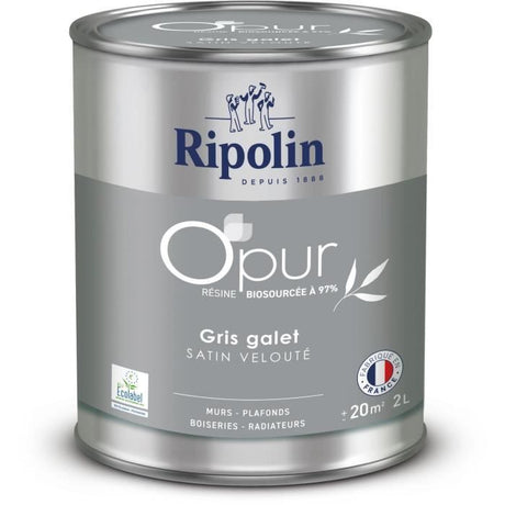 Peinture O'PUR murs, boiseries & radiateurs - RIPOLIN - 472824 - Gris galet - Satin veloute - 2 L