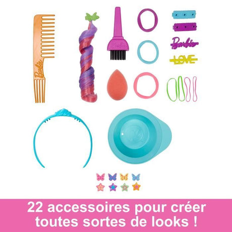 Barbie-Ultra Chevelure-Tete a Coiffer brune frisÈe meches arc-en-ciel HMD79