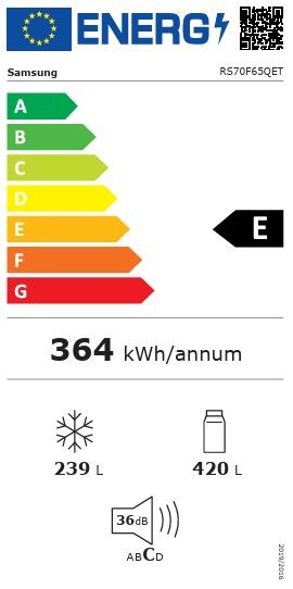 Réfrigérateur américain - SAMSUNG - RS70F65QET - 2 portes - 659 L - Classe E - Platinum Inox is backordered and will ship as soon as it is back in stock.