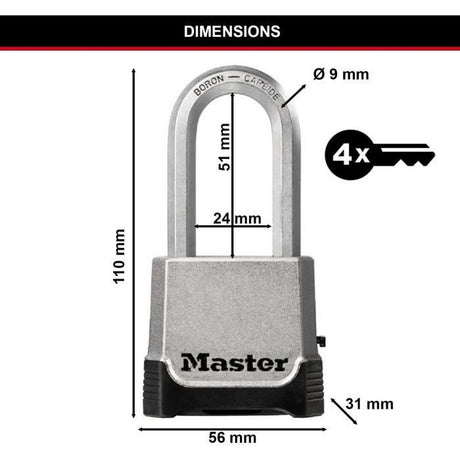 Cadenas Haute Sécurité - MASTER LOCK - M176EURDLH - Zinc - Anse XL - Extérieur