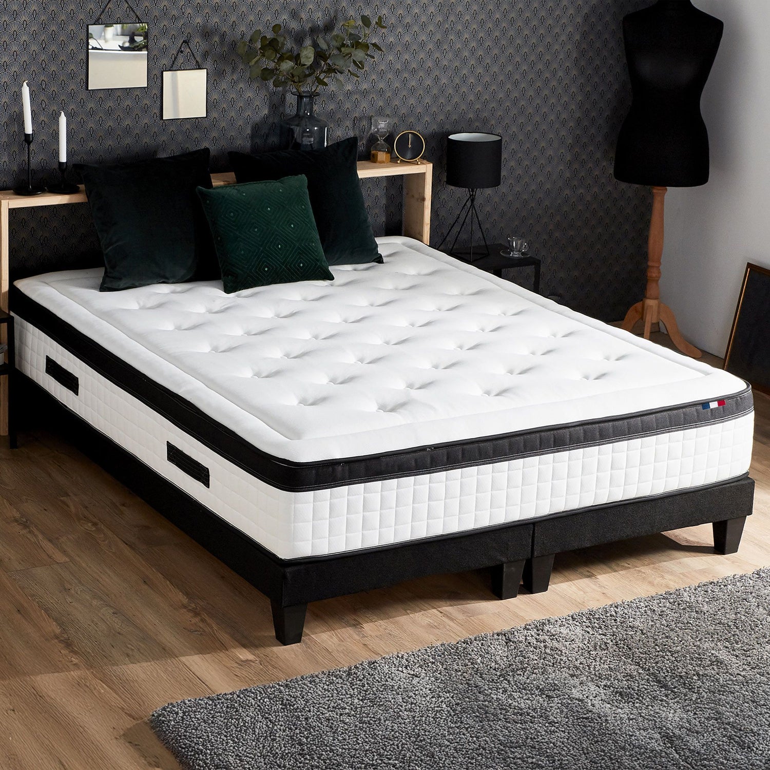 CONFORT DESIGN Quatuor Matelas + sommier 180 x 200 - Ep.30 cm - 4 technologies - Ressort/Mémoire/Latex/HR - Fabriqué en France