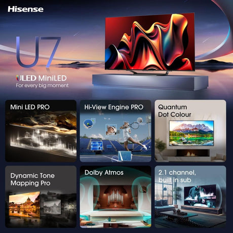 Hisense 50E7NQ - TV QLED 50 (126 cm) - 4K UHD 3840x2160 - HDR10 - TV connecté - 3xHDMI 2.1 - WiFi