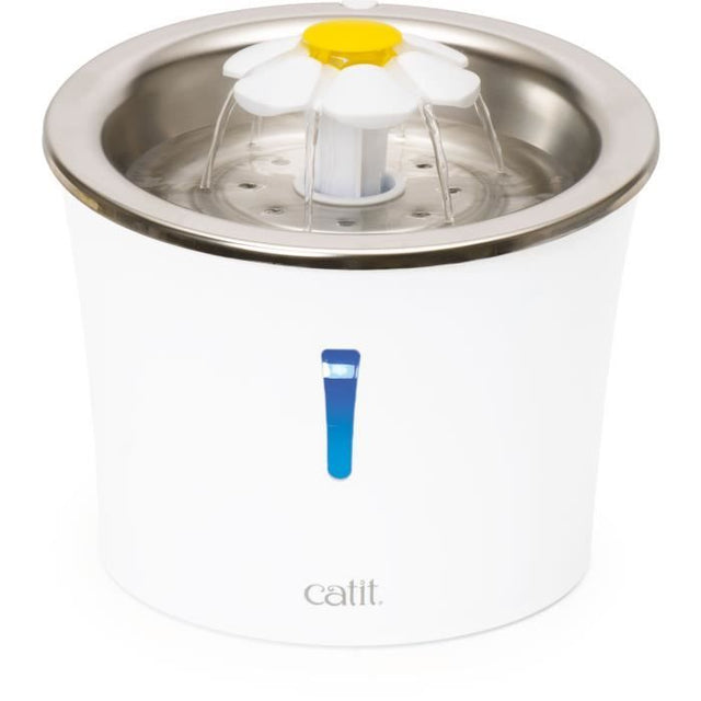 Fontaine a eau pour chat a fleur - CATIT - Flower - 3L - Dessus en acier inoxydable - Avec LED - Blanc