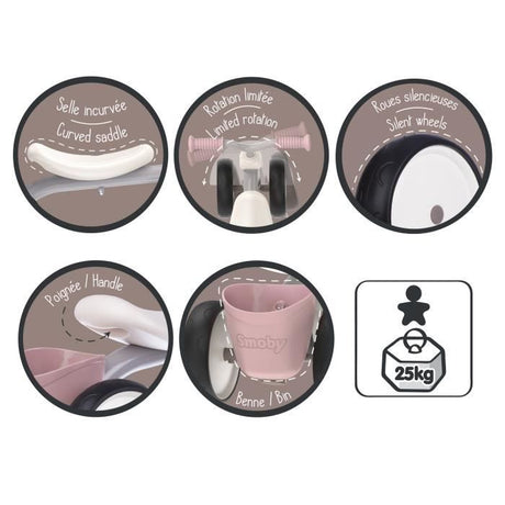 SMOBY Tricycle enfant évolutif Be Fun - Structure métal - Rose