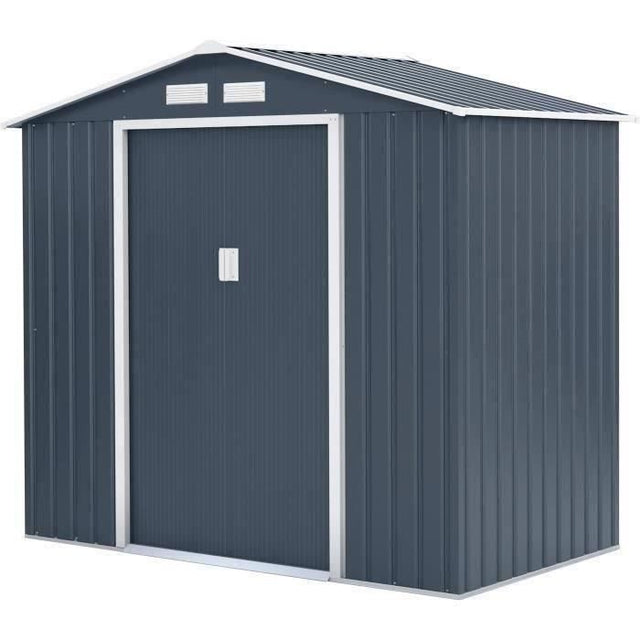Abri de jardin en métal 2,71 m² - 213 x 127 x 195 cm - PLUTON - Kit d'ancrage inclus, 2 portes coulissantes - Gris