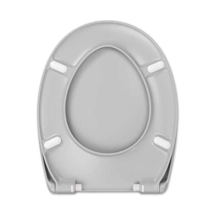 Abattant de qualitÈ - Coloris gris - Pratique et hygiÈnique - Aspect luxueux et durable - Optique moderne et hygiene parfaite gr‚ce a une surface antibactÈrienne lisse et sans pores - Confort d'utilisation gr‚ce a ses fonctions frein de chute et dÈclipsable - Montage rapide et sans outils.