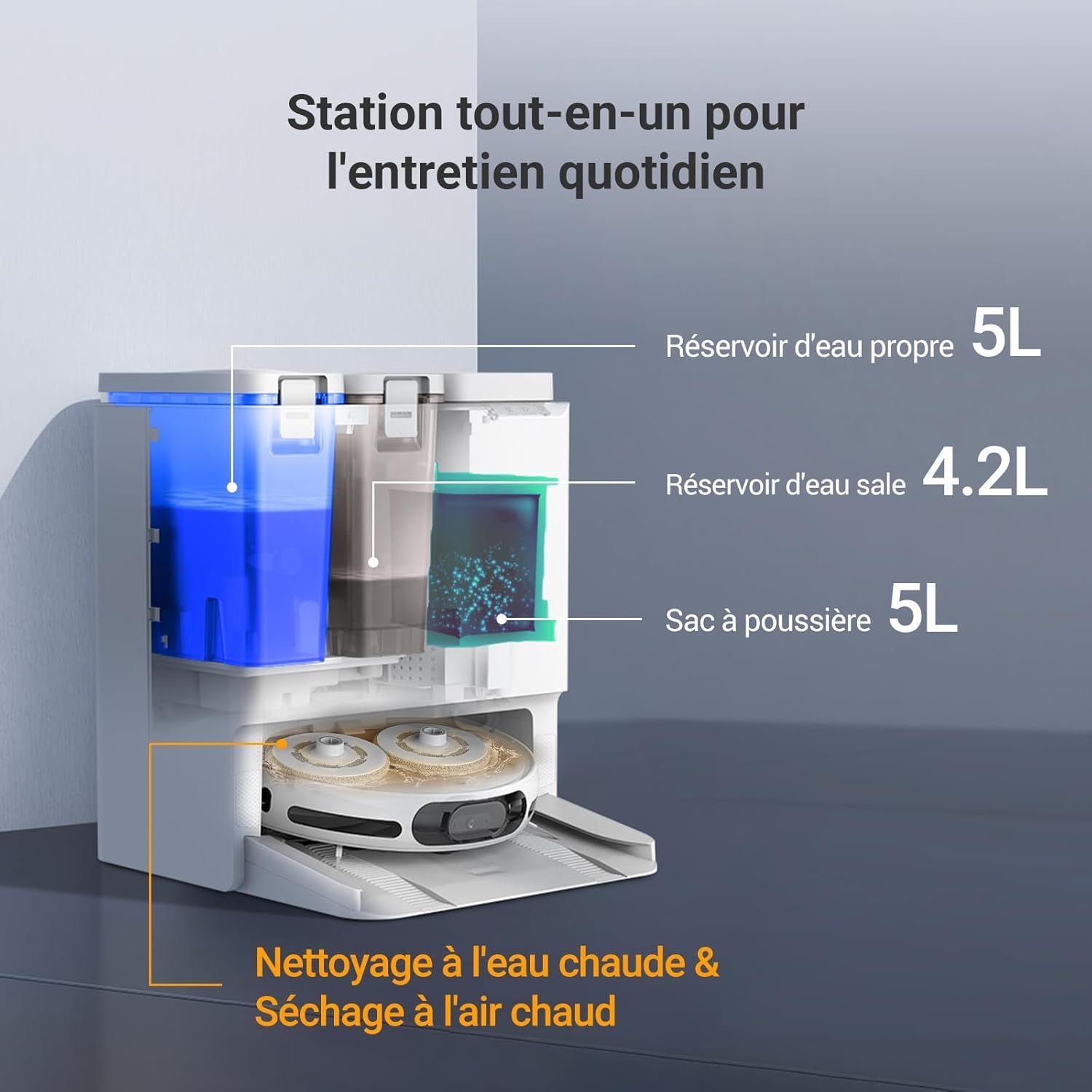 Le RS20 Pro d'EZVIZ est bien plus qu'un simple robot aspirateur : c'est un véritable assistant de nettoyage intelligent. Doté d'une station d'accueil multifonction, il installe et détache automatiquement ses serpillieres, aspire les saletés, lave a l'eau chaude et seche a l'air chaud. Avec une puissance d'aspiration de 7200 Pa, une brosse 3-en-1 et une autonomie de 300 m², il nettoie en profondeur tous types de sols. Grâce a sa caméra IA, son LiDAR et sa détection des tapis, il navigue avec précision et évite les obstacles. Connecté et compatible avec Alexa et Google Assistant, il offre un contrôle vocal et une cartographie personnalisée. Écoresponsable, il integre des matériaux recyclés et participe a un programme de reforestation. Le RS20 Pro allie performance, confort et engagement durable.