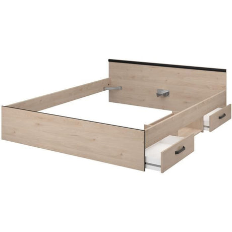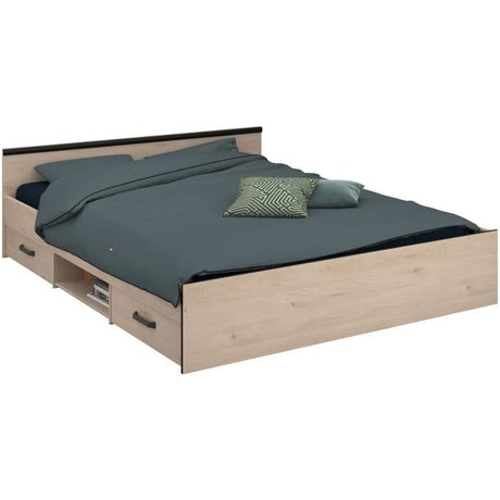 ZODIAC Lit adulte avec rangements - 160x200 cm - Décor chene et noir