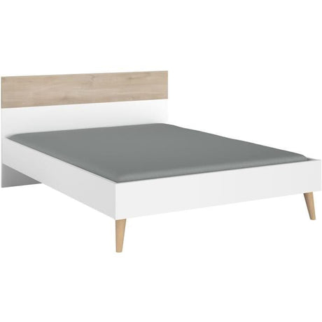 €36,07Precio unitario /Agotado AALBORG Lit adulte 140x190 cm - Style Scandinave - Fabrication Française - Blanc et Chene