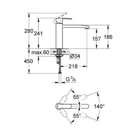 €102,29Precio unitario /Agotado GROHE Mitigeur monocommande Lavabo Taille S Get Chromé 23586000