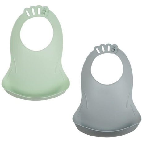 Lot de 2 bavoirs - THERMOBABY - BIBOU - Vert Céladon et Gris Charme - Ajustables et étanches