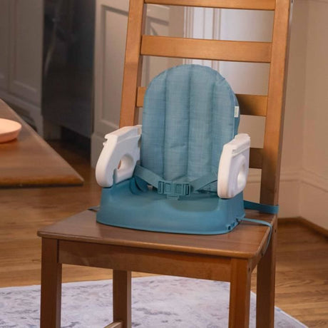 INGENUITY Rehausseur de chaise deluxe pliable turquoise, nomade avec tablette et sangles inclus