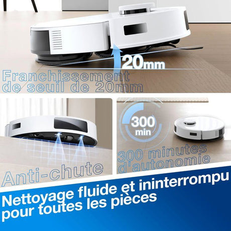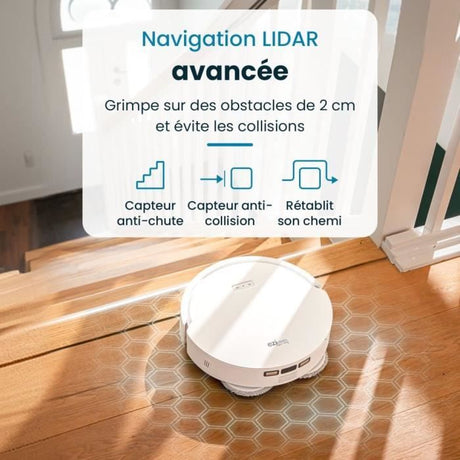 Robot Aspirateur Laveur Connecté EZICLEAN I-Bot Z5 - 75 min - 2.6Kpa - 60-90m² - Sols durs - 0.25L