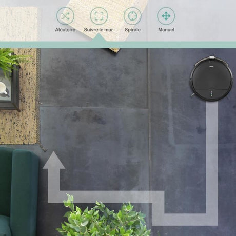 Robot Aspirateur Laveur Connecté EZICLEAN I-Bot Z5 - 75 min - 2.6Kpa - 60-90m² - Sols durs - 0.25L