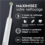 Brosse a Dents …lectrique Oral-B Pro 3 3000 Blanche - 2 Brossettes - Tete Ronde - 3 Modes de Brossage