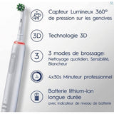 La brosse a dents Èlectrique Oral-B Pro 3 3000 est conÁue par Braun. Elle offre 2 minutes de brossage et dispose de 3 modes d'expÈrience : nettoyage, sensibilitÈ et blancheur. UtilisÈe par les dentistes eux-memes, elle est idÈale pour un nettoyage en profondeur.