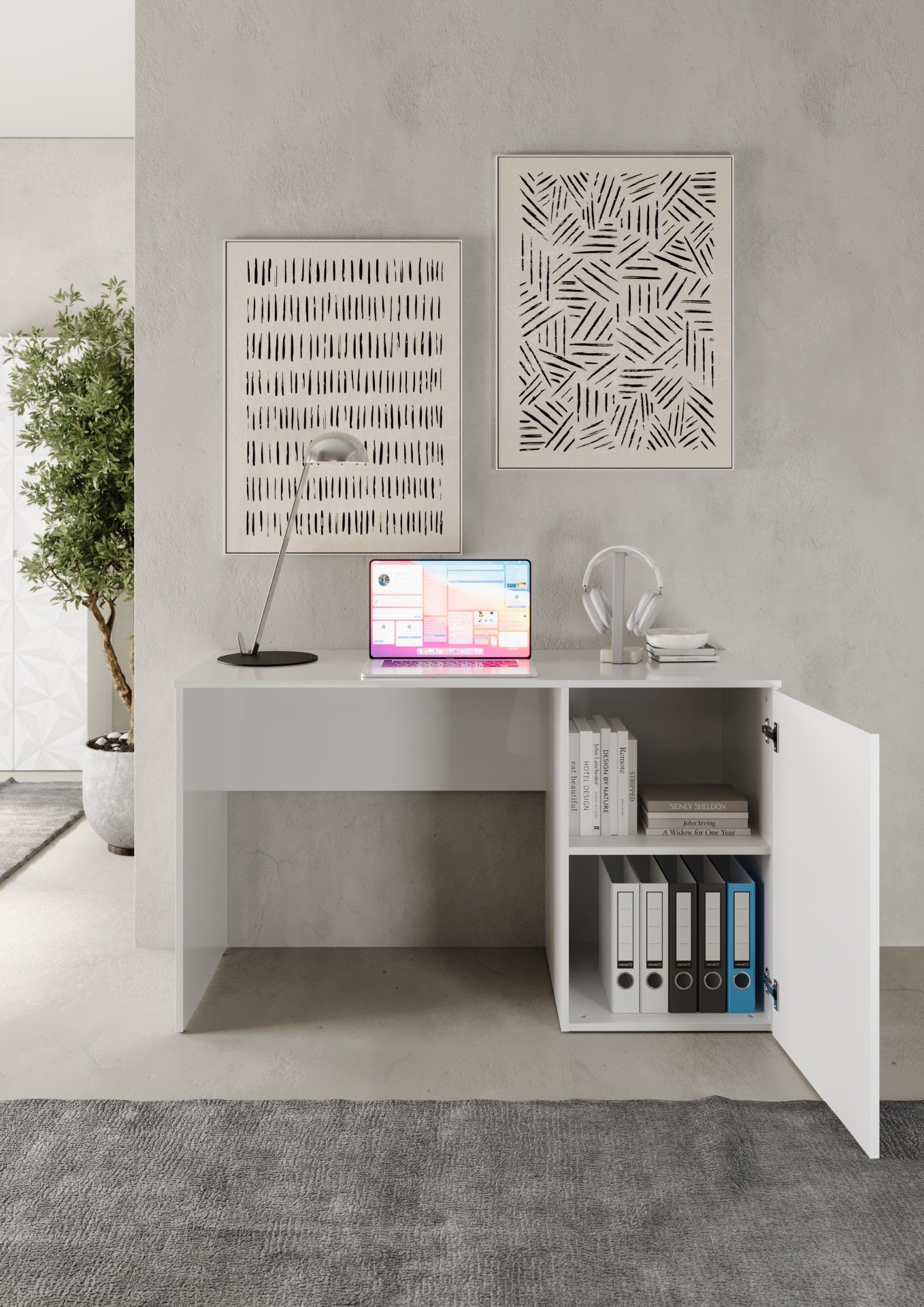 Bureau - PARIGI - Blanc laqué brillant avec sérigraphie - 120 x 60 x 7 – Tradiscount