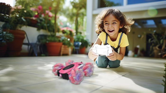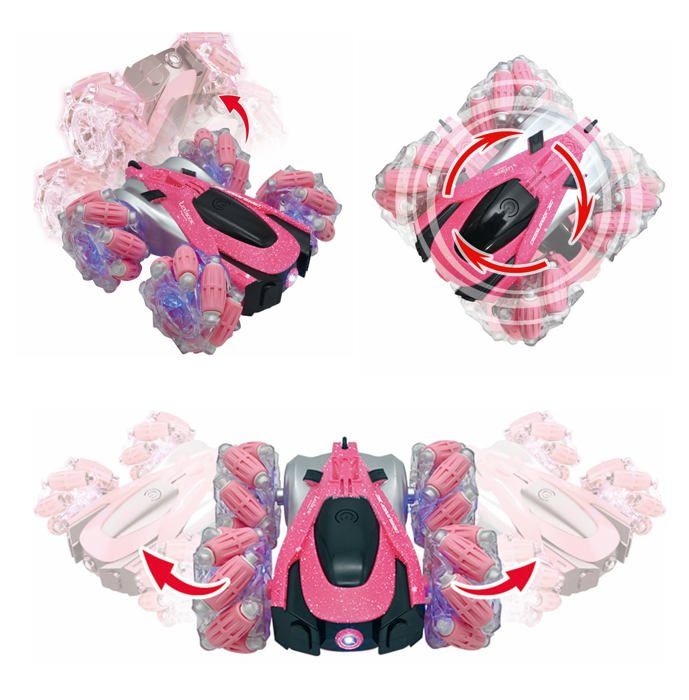 Crosslander 360+ - Voiture rose télécommandée Tout-Terrain lumineuse, programmable et rechargeable.