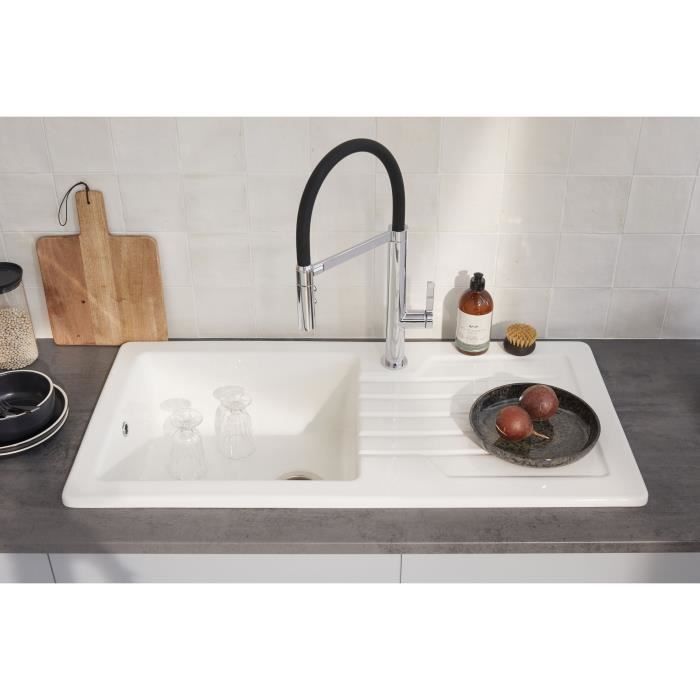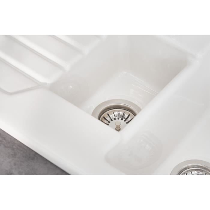 Evier a encastrer céramique blanc - JACOB DELAFON - 1,5 bac - 100cm - Réversible avec égouttoir