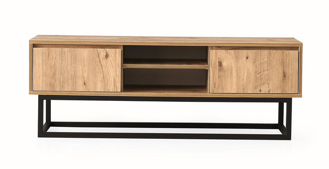 Meuble TV - BELINDA - Noir / Pin - 46 x 192 x 15 cm