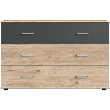 €37,73Precio unitario /Agotado Commode RHODES - 6 tiroirs - Décor Chene et gris - L130 x P41 x H83 cm
