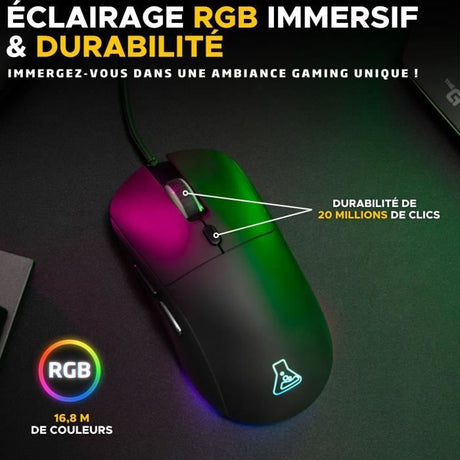 Souris Gamer filaire - The G-Lab - KULT-OXYGEN - RGB - 12800 DPI - Noir