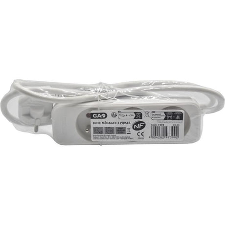 Bloc ménager - GAO - 3 prises 2P+T - Avec interrupteur, conforme NF