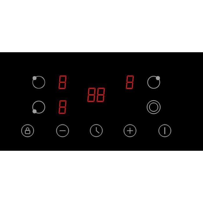 Table de cuisson 3 zones vitrocéramique - 5200W - commandes sensitives - 9 niveaux de puissance - minuteur 99 min - minuterie électronique - foyers Hi light- signal sonore fin de cuisson - sécurité enfant - affichage chaleur résiduelle - verrouillage commandes - Dimensions d'encastrement L 56 cm xP 49 cm - NOIR - Garantie 2 ans pieces main d'oeuvre et déplacement