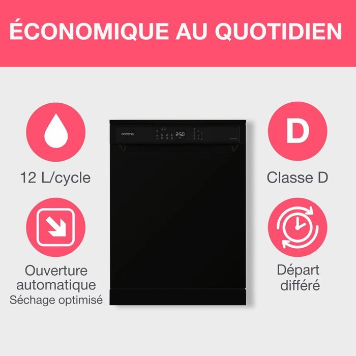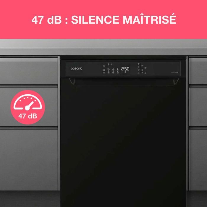 Lave-vaisselle pose libre OCEANIC OCEALV1247B - 12 couverts - 47 dB noir