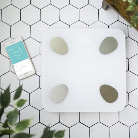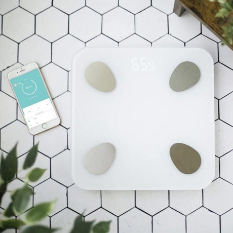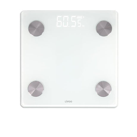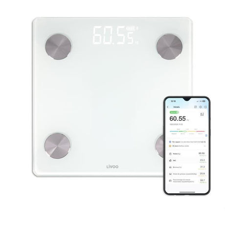 Pese-personne connecté LIVOO - 13 indicateurs - Plateau en verre trempé - Pesée jusqu'a 180 kg