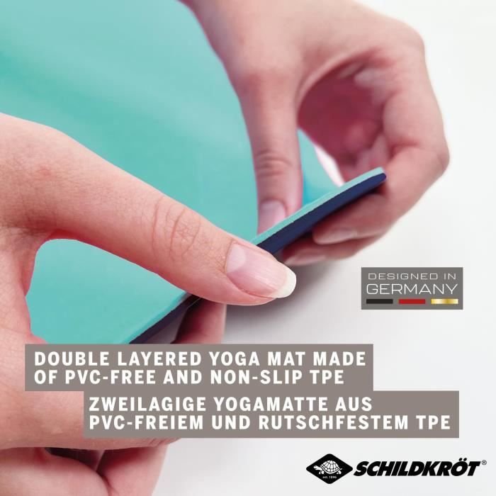 Tapis de yoga - FITNESS - SCHILDKRÖT - 180 x 61 cm - 4 mm - Sac inclus - Vert / Bleu