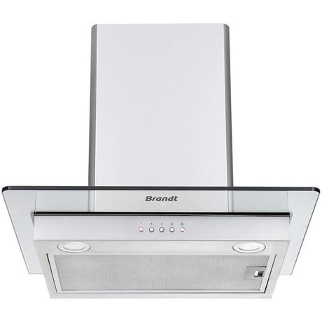 Hotte décorative murale BRANDT BHB1644IX - 60cm - Evacuation & recyclage - Inox + Verre - 552 m3/h