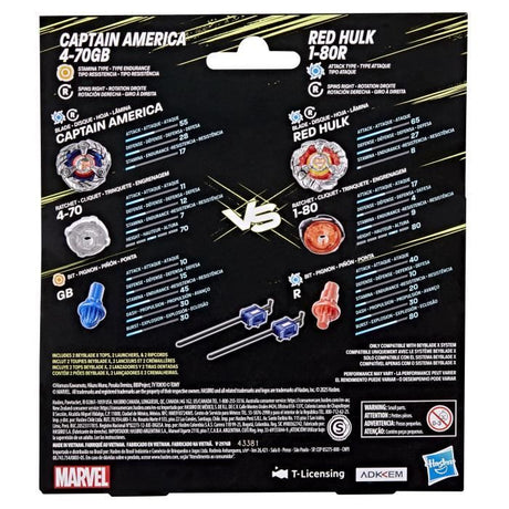 Beyblade X Multipack Toupie Captain America 4-70GB contre Red Hulk 1-80R, des 8 ans
