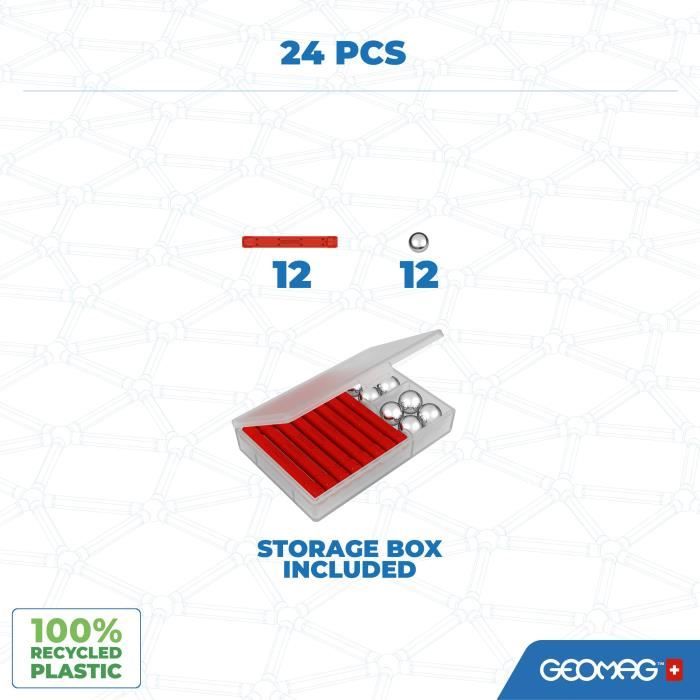 Jeu de construction magnétique - GEOMAG - Classic Recycled Magnetic Geometry 24 pieces - Géométrie - 3D - Éducatif